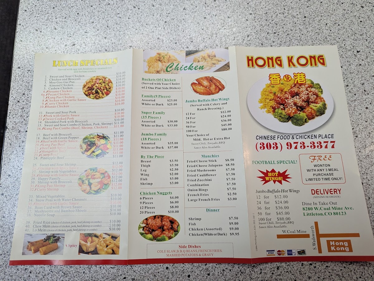 Welcome to Hong Kong - Littleton, a true gem located at 8280 W Coal Mine Ave in Littleton, Colorado. This cozy establishment serves up authentic, affordable Chinese soul food that delights the senses. The menu highlights include a savory Chicken and Corn Soup perfect for sharing, and a variety of hearty Fried Rice options that cater to every palate, from Pork Fried Rice to a delightful combination with shrimp.